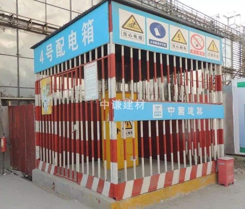 3.雙層硬防護間的防護棚外立面掛藍底白字:加強安全用電,防止觸電傷害等安全警示語,操作規程牌,帽頭設置建筑企業標識;